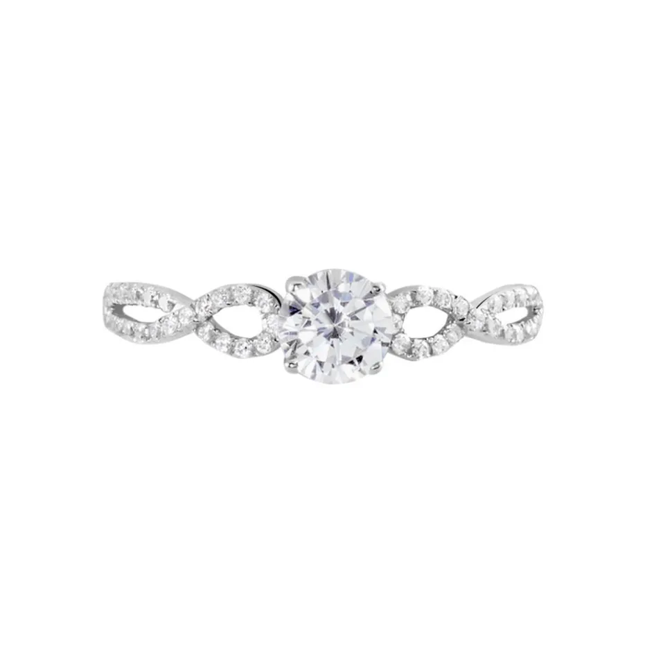 Solitaire Or Blanc 375/1000 Oxyde De Zirconium Accompagne Corps De Bague Entrelace