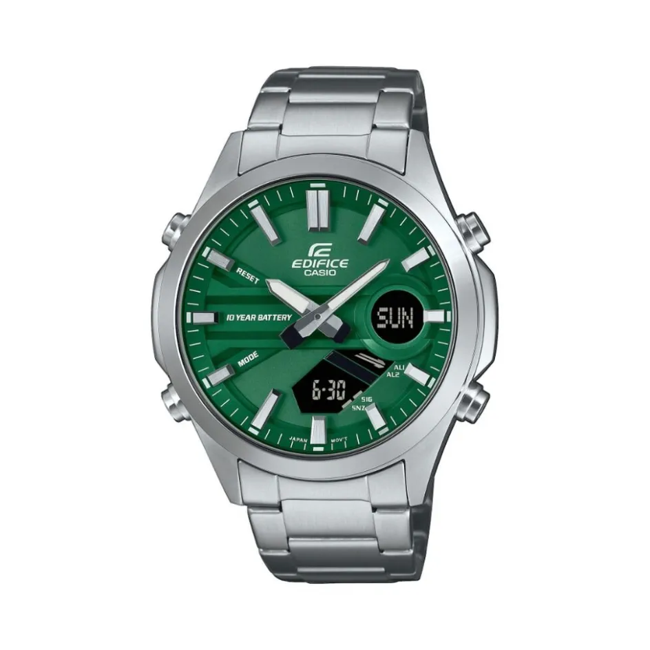 Montre Casio Acier Argente Ronde Quartz 45.5mm Fond Vert Bracelet Acier Inoxydable Argente Efv-c120d-3aef