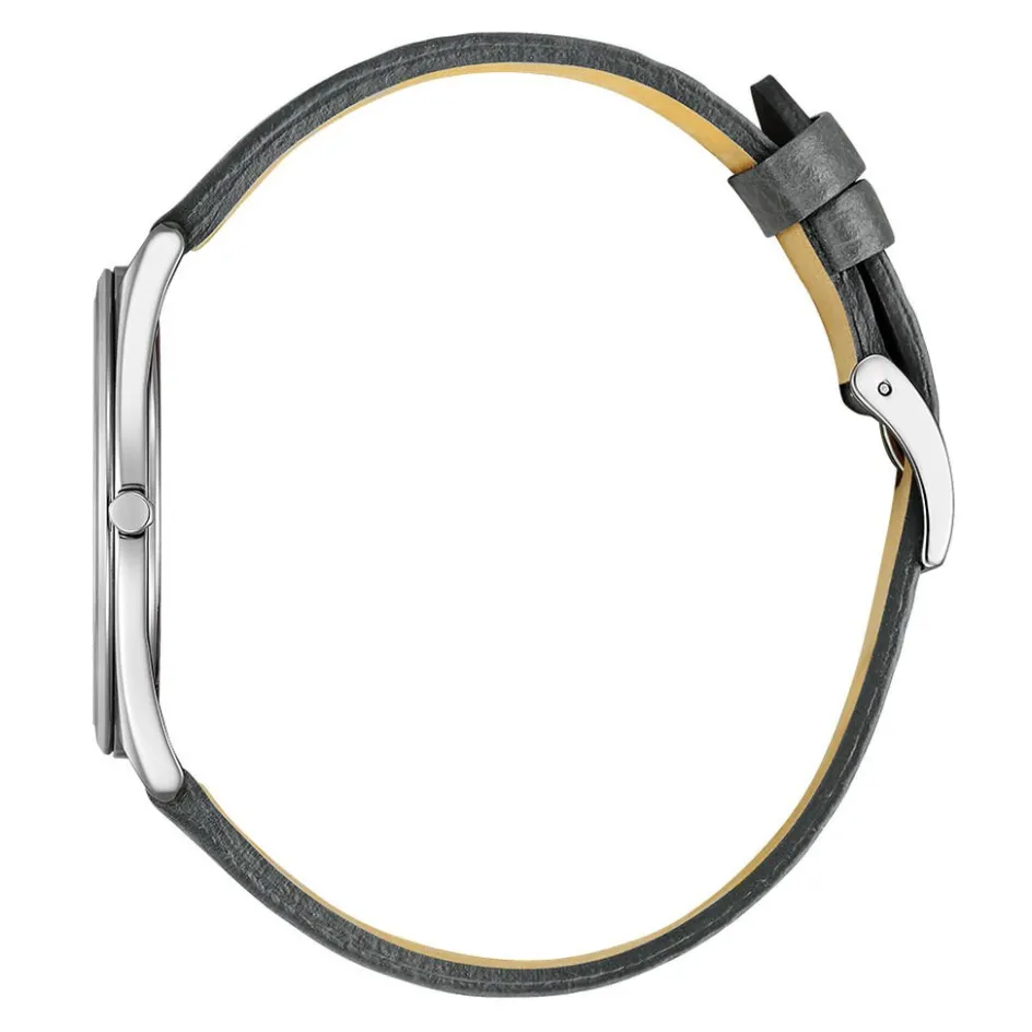 Montre Citizen Suratto Acier Inoxydable Argenté Quartz Solaire Ronde 38,4Mm Fond Bleu Bracelet Cuir De Veau Gris Ar3120-24L