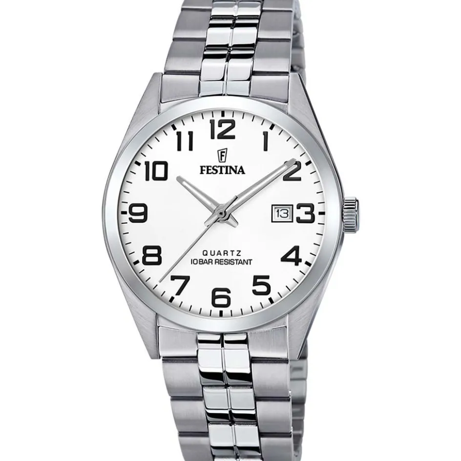 Montre Festina Classics Acier Argenté Ronde Quartz 40mm Fond Blanc Bracelet Acier Argenté F20437/1
