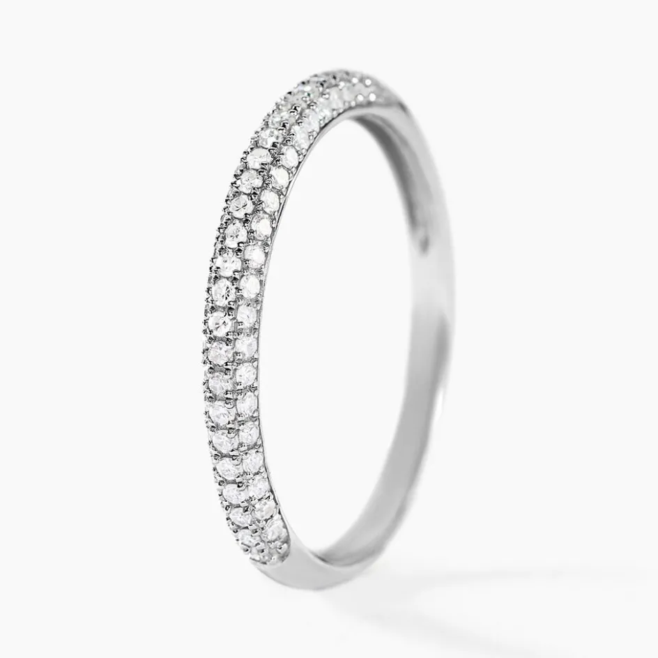 Demi Alliance Or Blanc 375/1000 Pavage Diamants 0.27cts