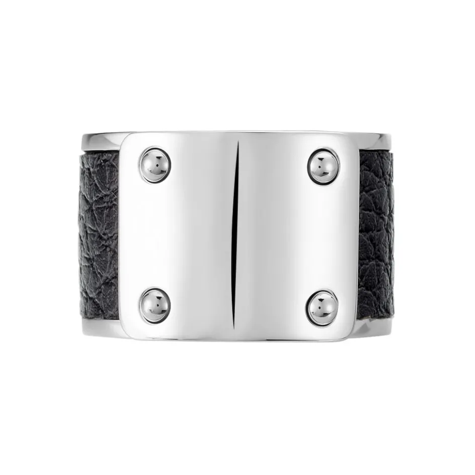 Bague Acier Anneau Large Cuir Noir Plaque Carre Avec Boulons T 60