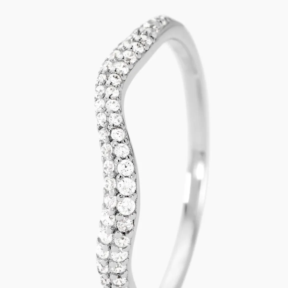 Bague Argent Blanc 925/1000 Forme Organique Pavage Oxydes De Zirconium