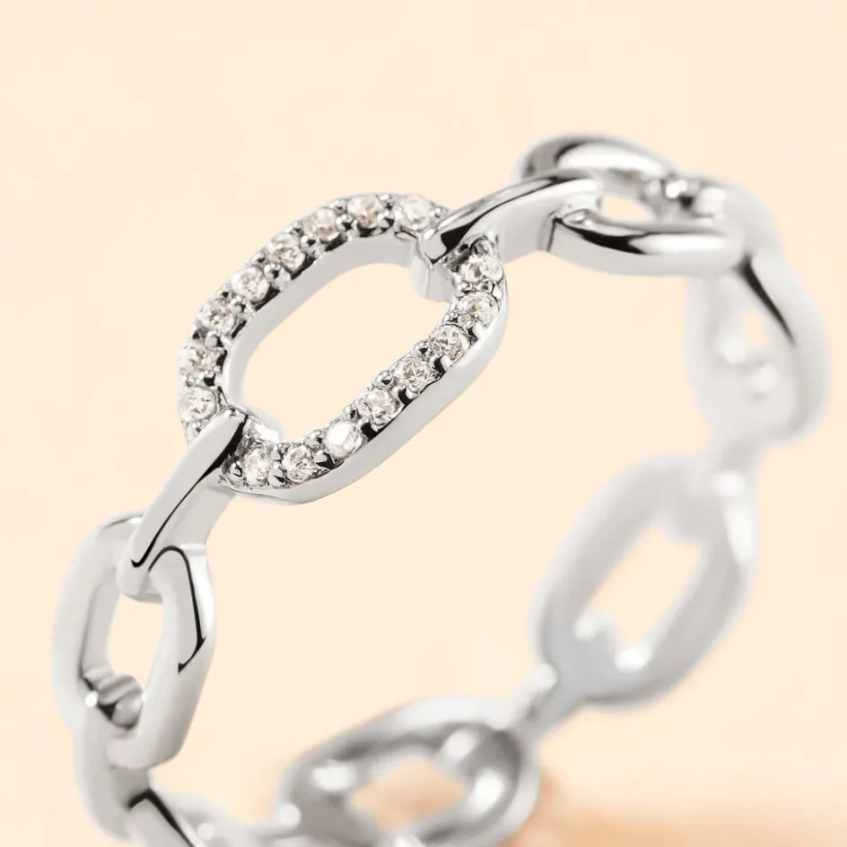 Bague Argent 925/1000 Maillons Entrelacés Oxydes De Zirconium Serti Griffes
