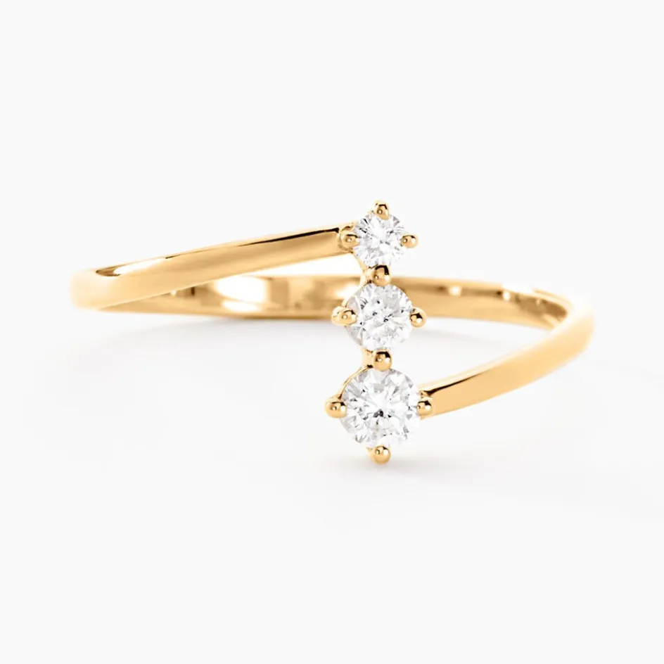 Bague Or Jaune 375/1000 Trilogie Diamants Synthetiques 0.19cts Sertis Griffes