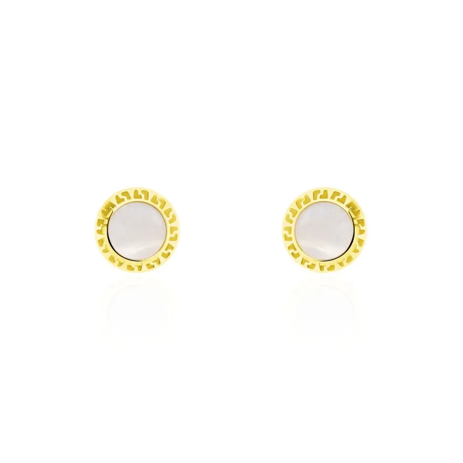 Boucles D’oreilles Puces Or Jaune 375/1000 Forme Rondes Email Blanc Largeur 6mm