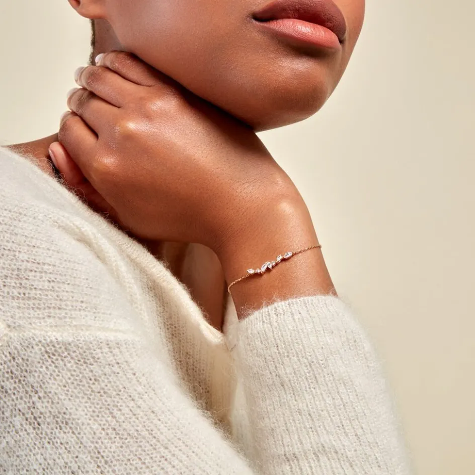 Bracelet Plaqué Or Jaune Oxydes De Zirconium Maille Forçat 18cm
