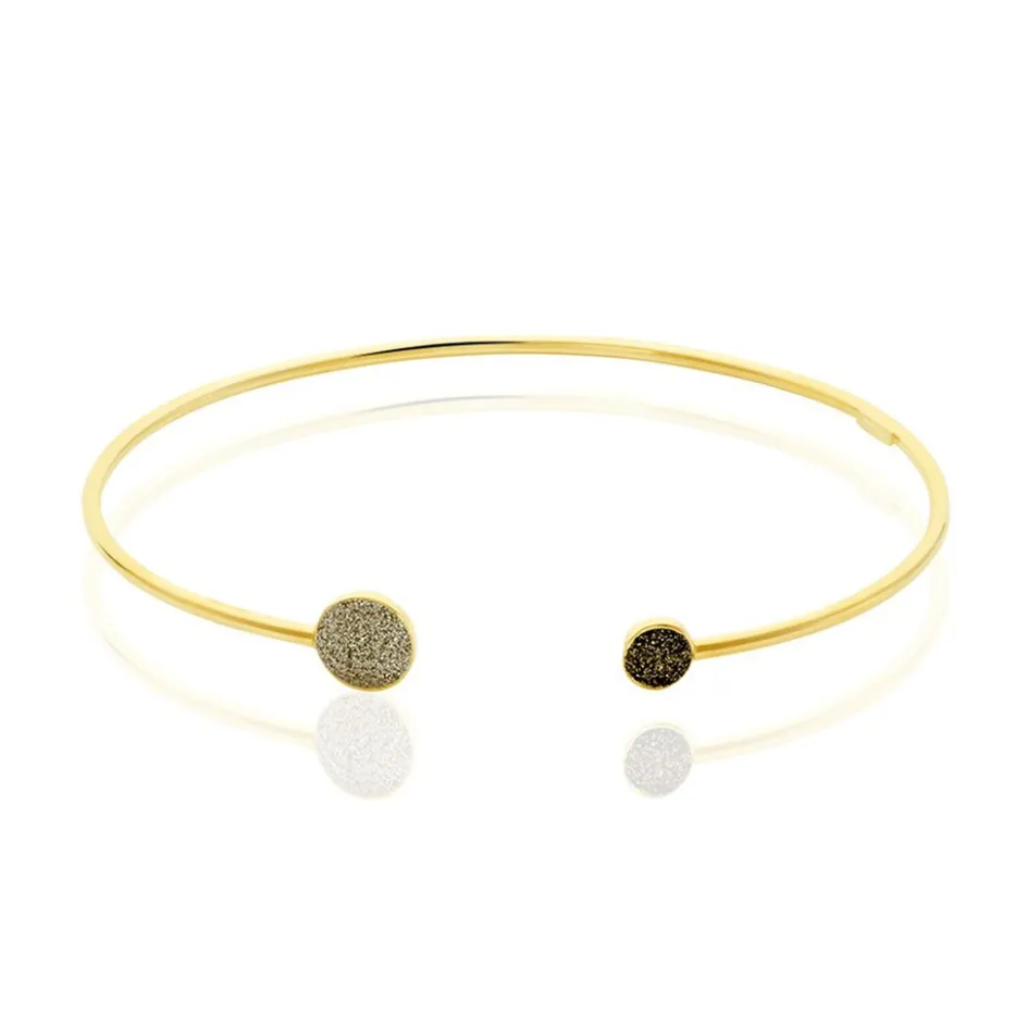 Bracelet Jonc Or Jaune 375/1000 Double Pastilles Glitter Dore Et Bronze