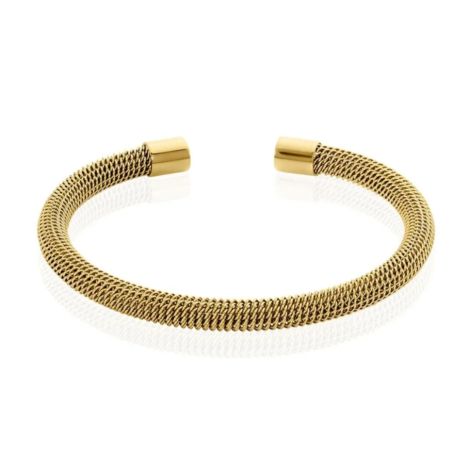 Bracelet Jonc Acier Inoxydable Jaune Maille Et Embouts Cylindres Diametre 60mm