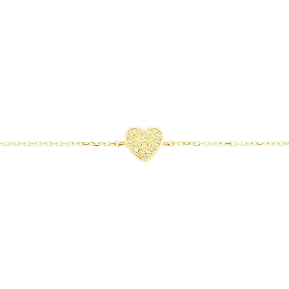 Bracelet Or Jaune 375/1000 Coeur Pavage Diamants Maille Forcat 16+2cm