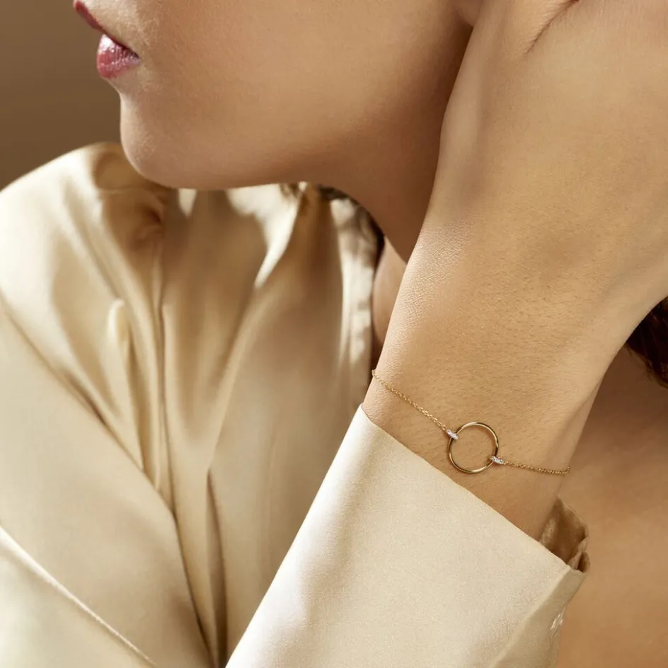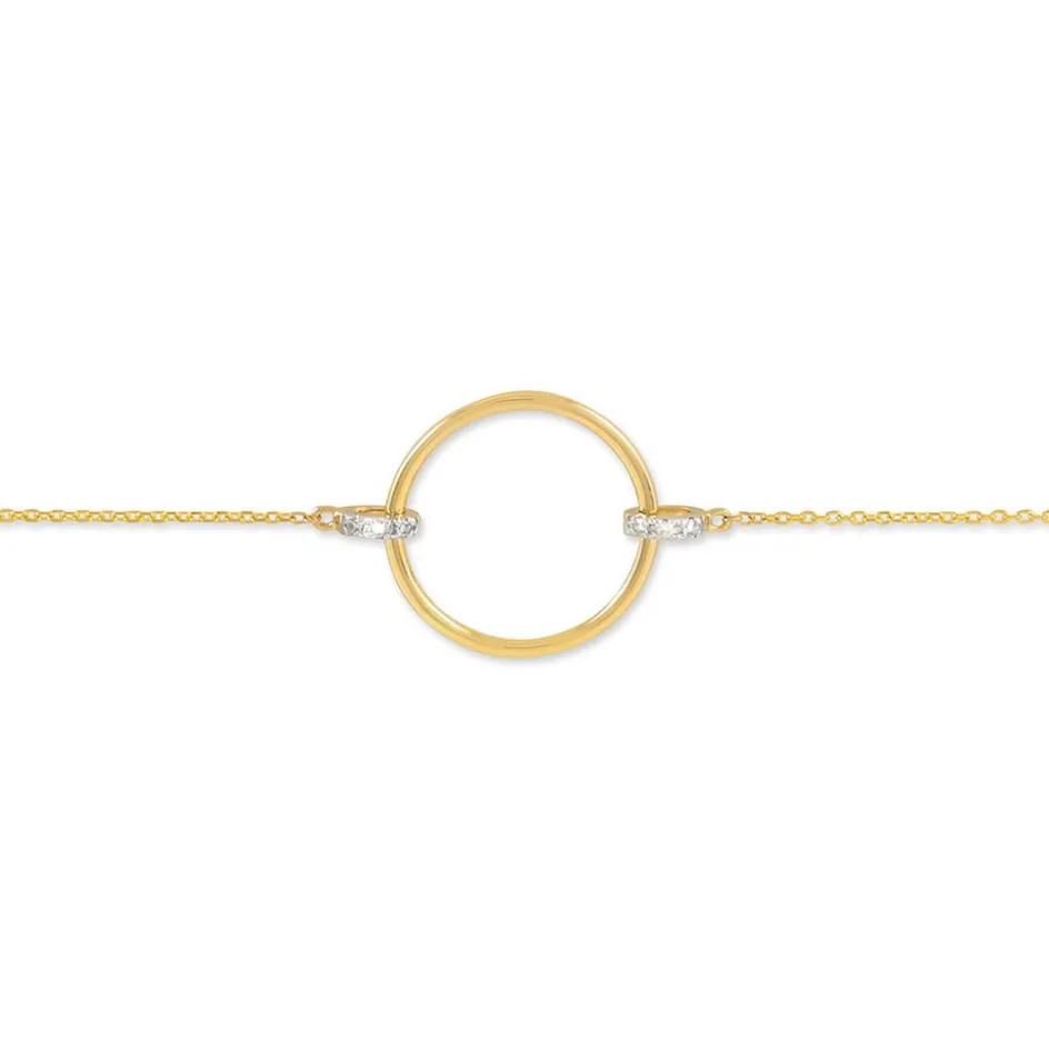 Bracelet Or Jaune 375/1000 Cercle Diamants 18.5cm