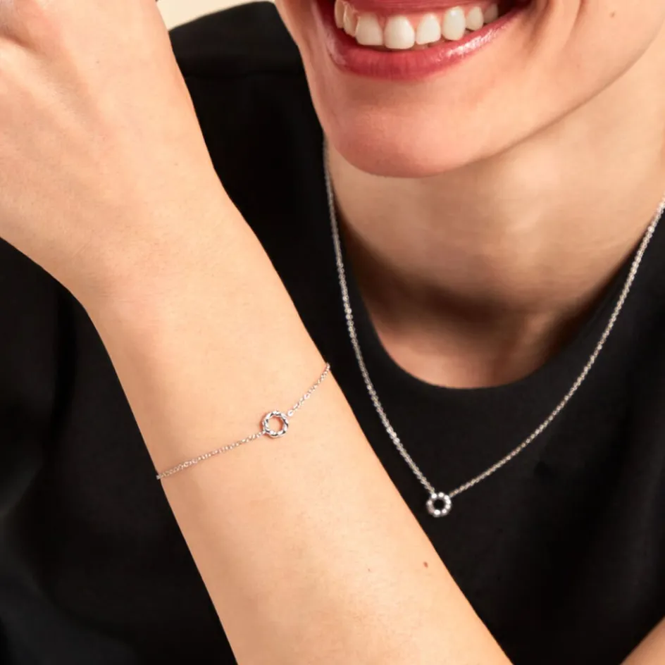 Bracelet Argent Blanc 925/1000 Cercle Effet Torsadé Maille Forçat 16+3cm