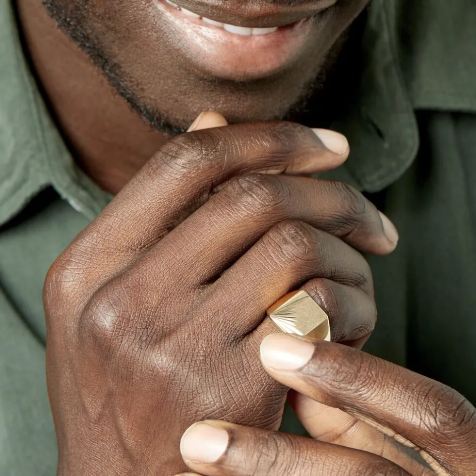 Chevaliere Plaqué Or Jaune Plateau Carre Lisse Soleil