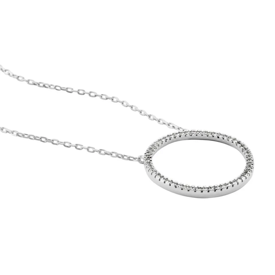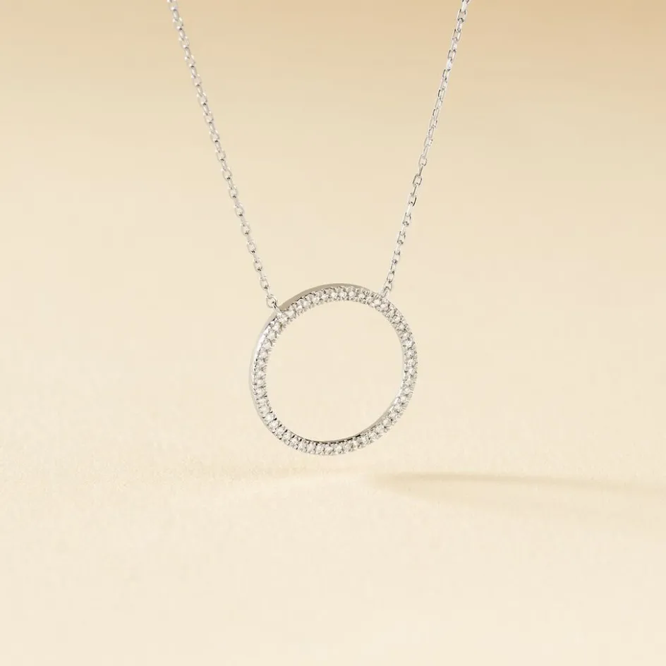 Collier Or Blanc 375/1000 Forme Cercle Pavage Diamants 50cm