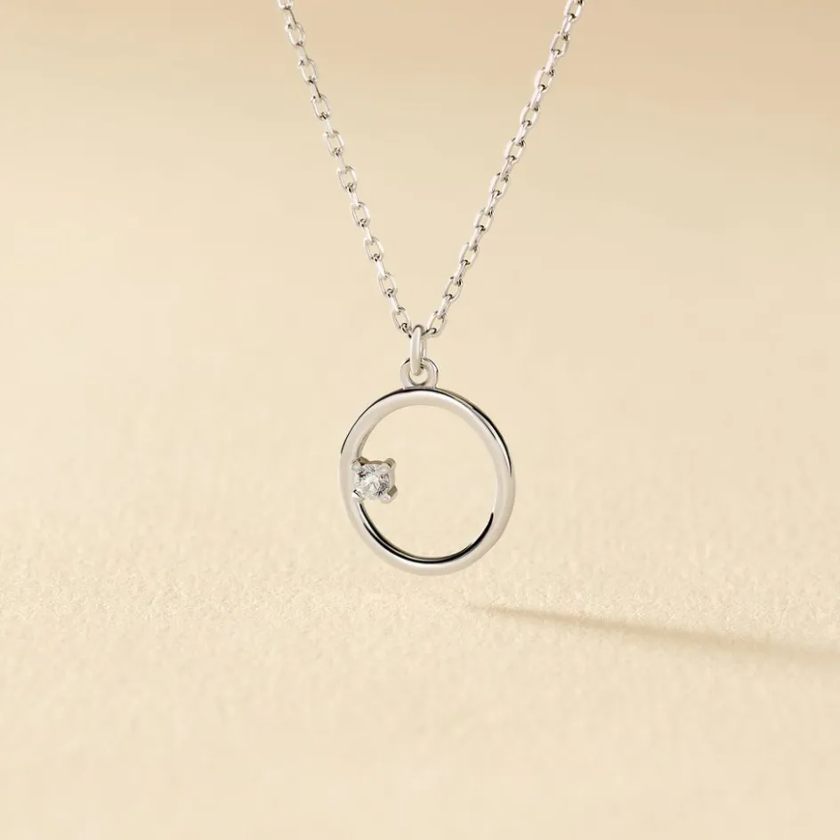 Collier Argent 925/1000 anas Pendentif Cercle Oxyde De Zirconium Chaine Maille Forcat 42cm