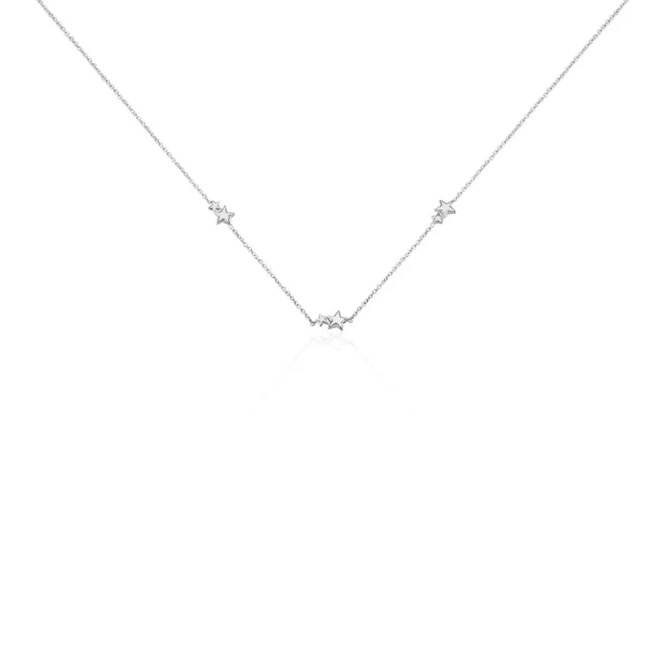 Collier Argent Blanc 925/1000 Duo Etoiles Multiple Maille Forcat 42cm