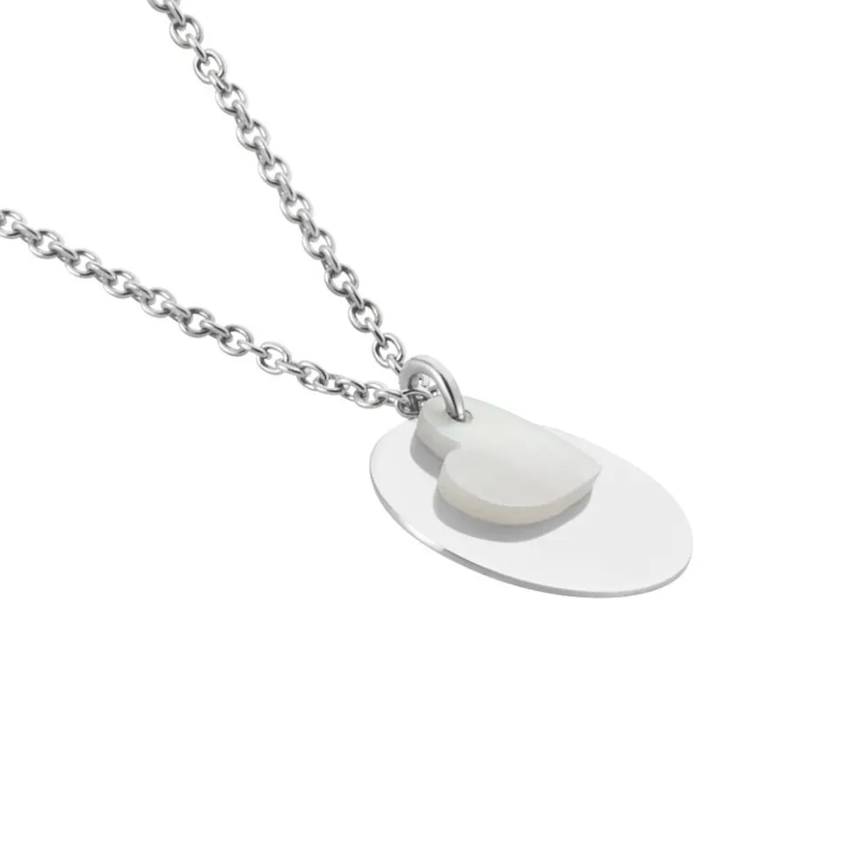 Collier Argent Blanc 925/1000 C艙ur Nacre Blanche Pastille Maille Forçat 45cm