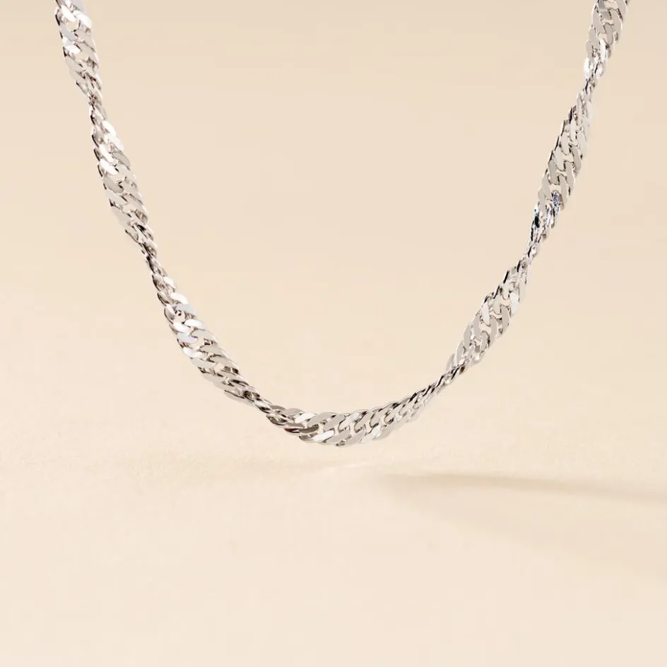 Collier Argent Blanc 925/1000 Maille Torsade Epaisseur 3mm 45cm