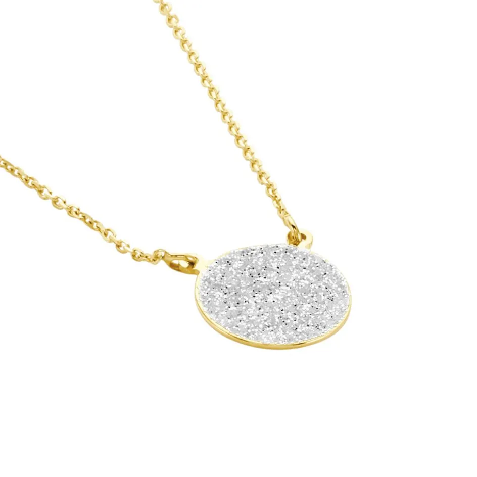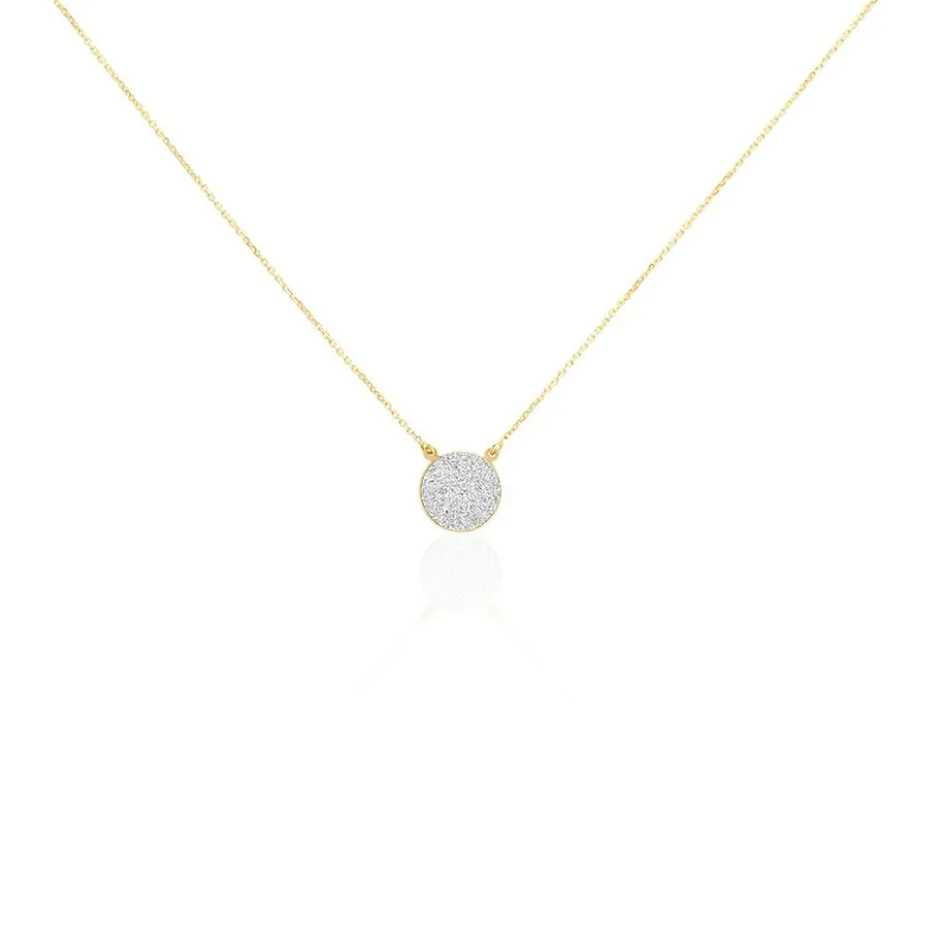 Collier Or Jaune 375/1000 Pastille Glitter Silver Maille Jaseron 42+3cm
