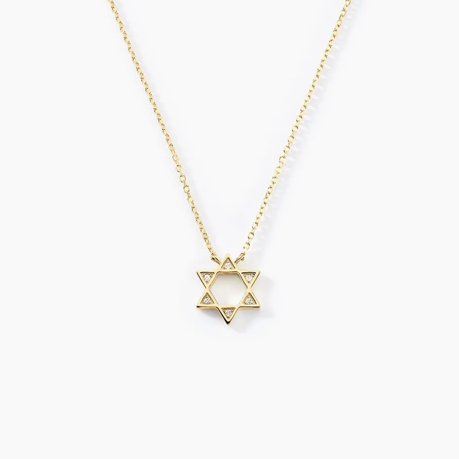 Collier Or Jaune 375/1000 Etoile De David Pavage Diamants Maille Forcat 40+2cm