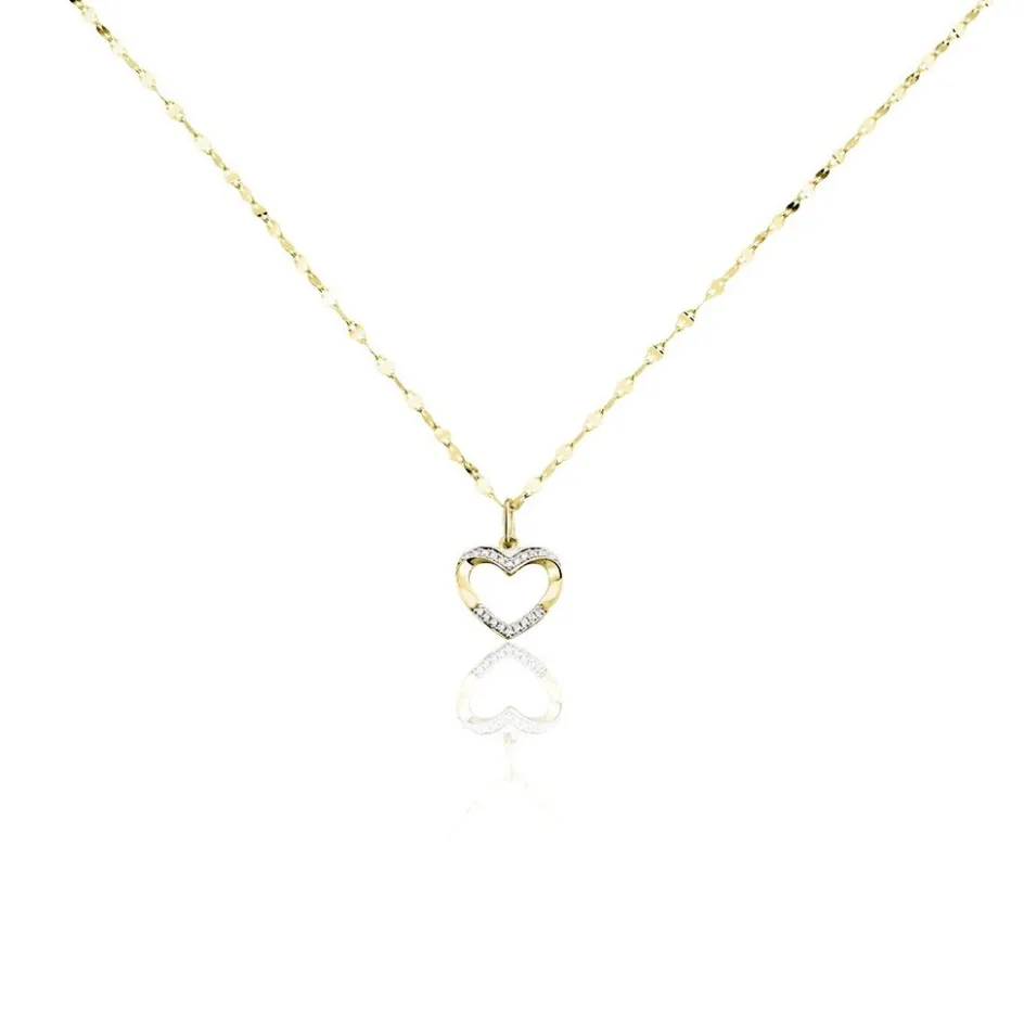 Collier Or Jaune 375/1000 C艙ur Diamants Et Maille Lumina 40+2cm