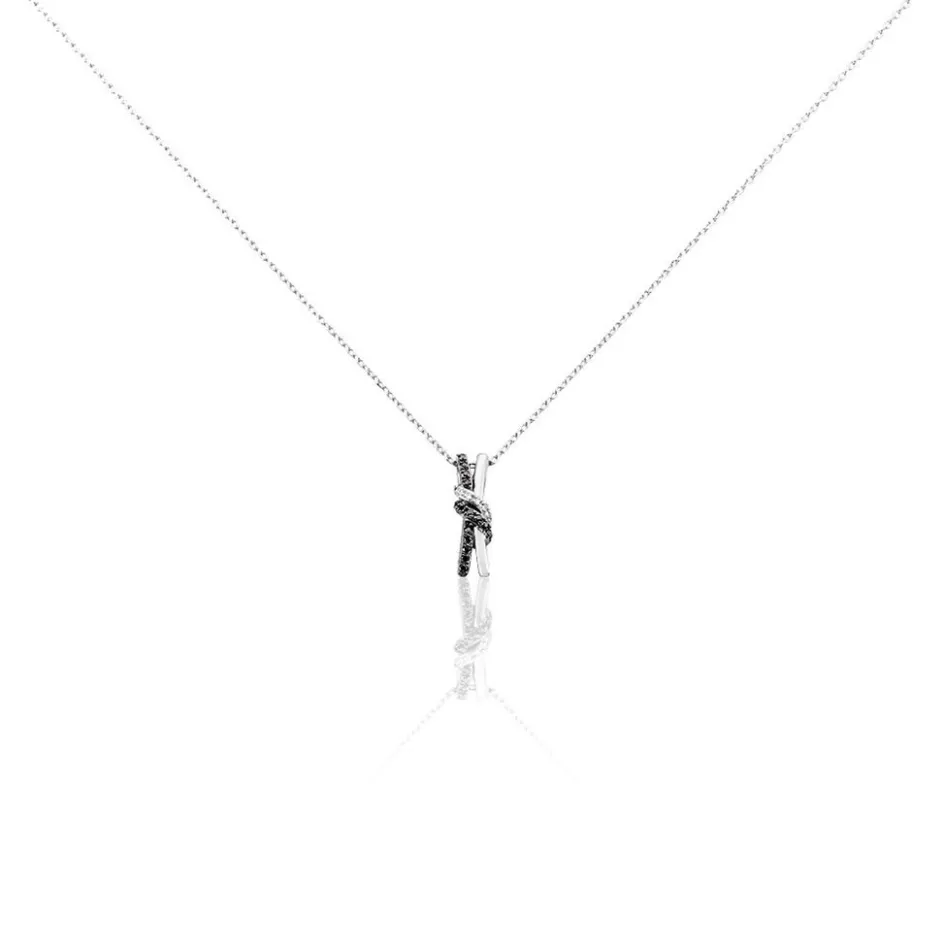 Collier Or Blanc 375/1000 Noeud Pave Diamants Et Blancs Diamants Noirs 42cm