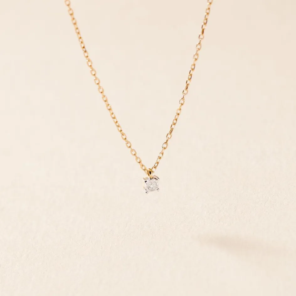 Collier Or Jaune 375/1000 Solitaire Diamant 0.02cts Maille Forçat 42cm