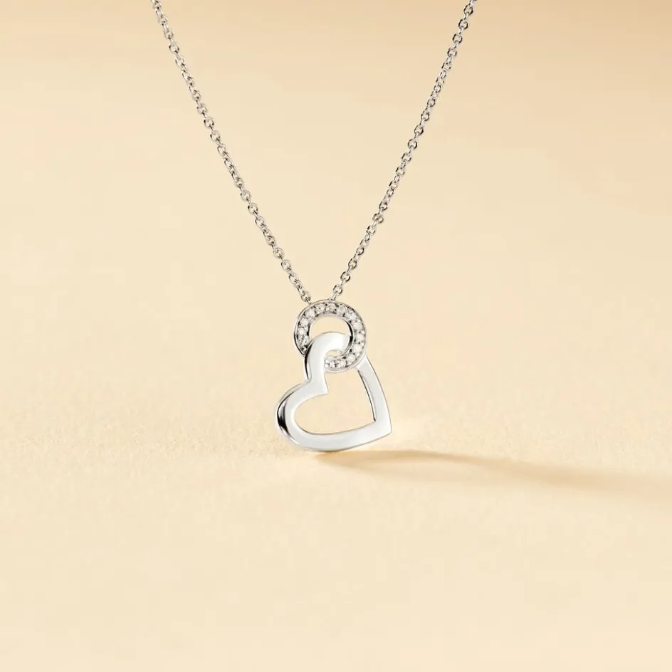 Collier Or Blanc 375/1000 C艙ur Et Cercle Pavage Diamants 42cm