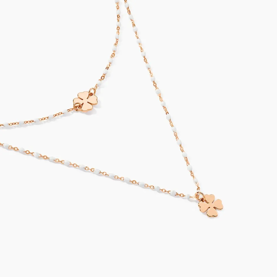 Collier Argent Rose 925/1000 Trèfles Boules émail Blanc Double Rang Mailles Boules 35+3cm