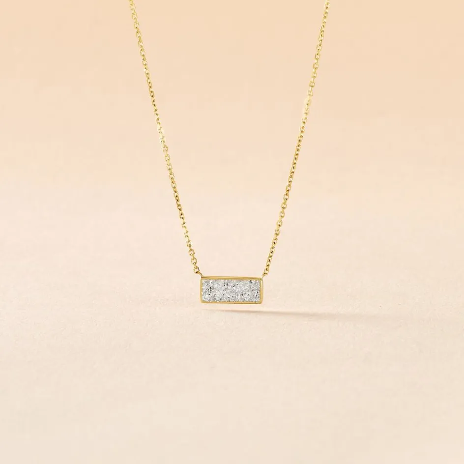 Collier Or Jaune 375/1000 Rectangle Glitter Argente Maille Jaseron 40+2cm