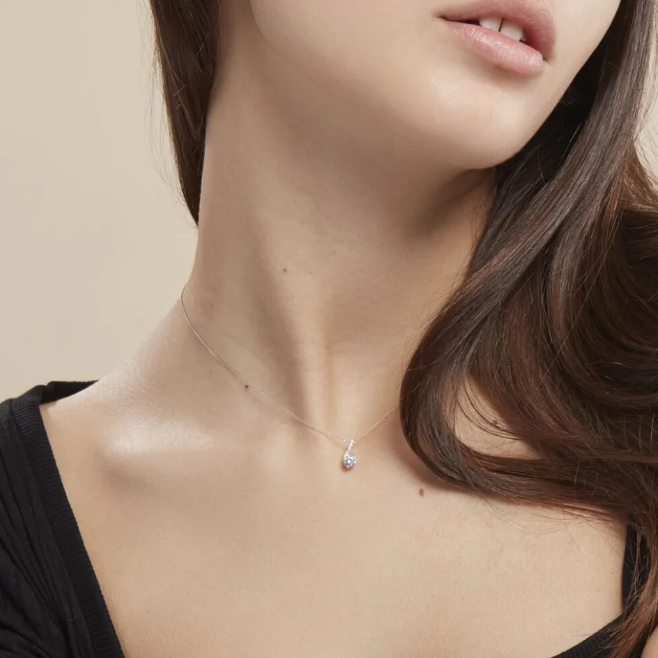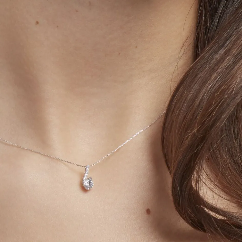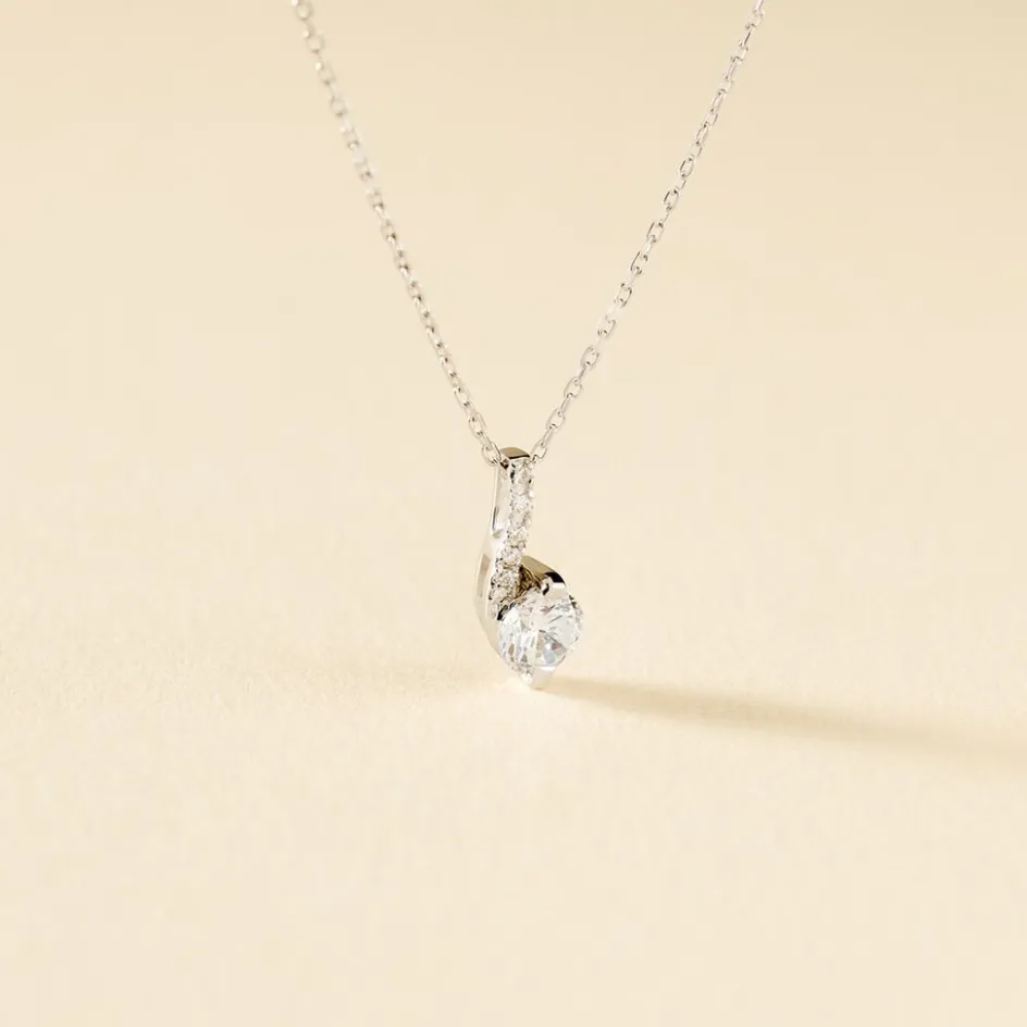 Collier Or Blanc 375/1000 »olly » Maille Forçat Effet Vrille Oxydes De Zirconium Central Et Sur La Bélière 42cm
