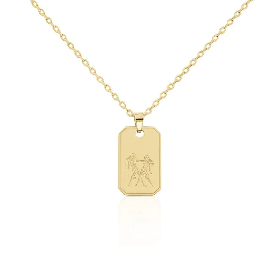 Collier Plaqué Or Jaune Plaque Gravee Signe Astrologique Gemeaux Maille Forcat 50cm