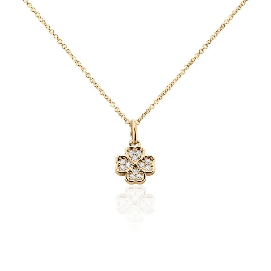 Collier Plaqué Or Jaune Trèfle Pavage Oxydes De Zirconium Maille Forçat 42+3cm