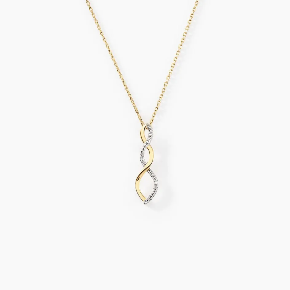 Collier Or Jaune 375/100 Vagues Pavage Diamant Maille Forcat 40+2cm