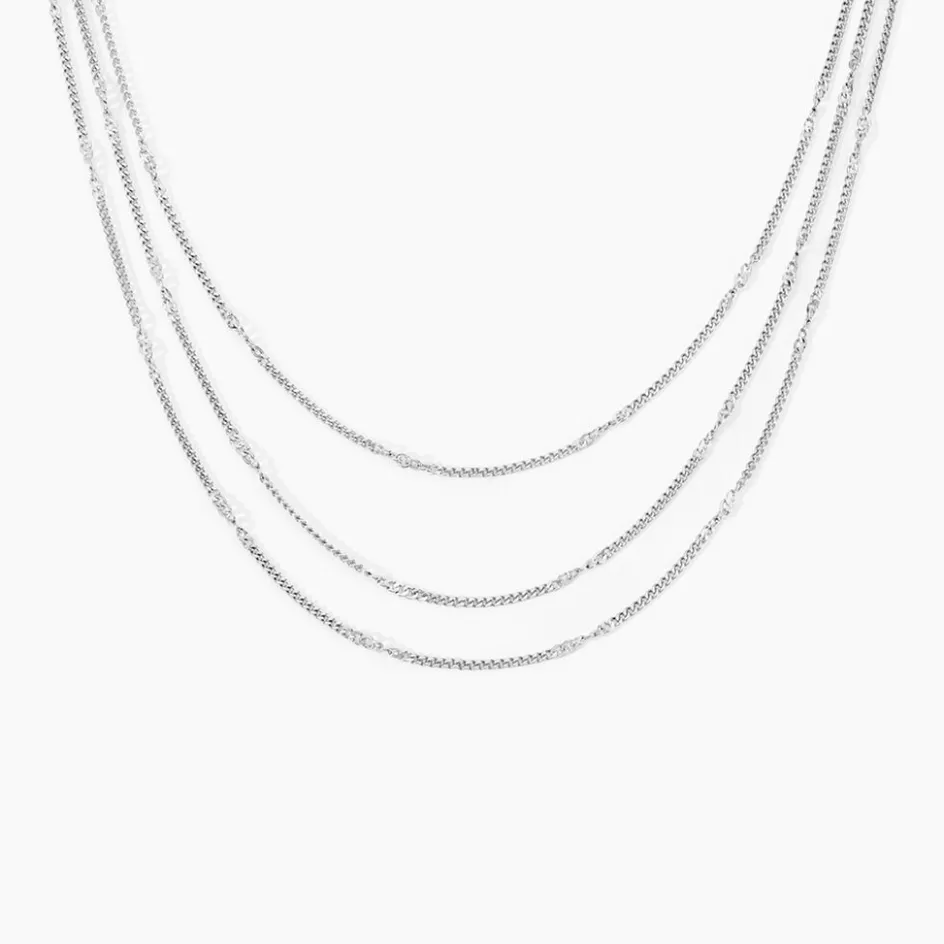 Collier Argent Blanc 925/1000 Multirang Maille Alternee 1/3 Largeur 1.3Mm 42+3Cm