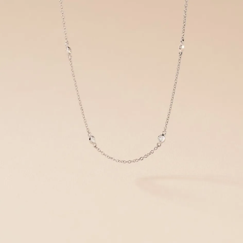 Collier Argent 925/1000 Oxydes De Zirconium Serti Clos Maille Forcat 42cm