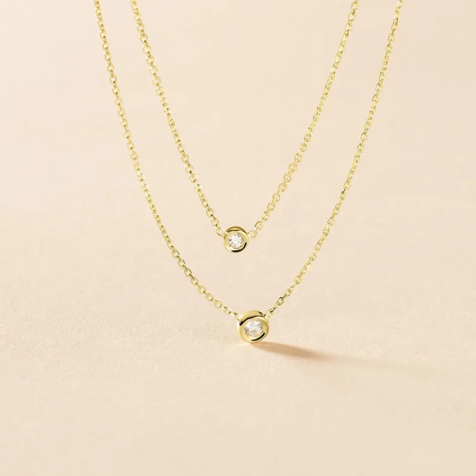 Collier Or Jaune 375/1000 Double Chaine Oxydes De Zirconium Clos 42cm