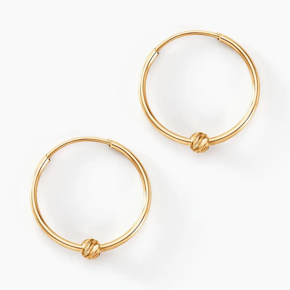 Creoles Or Jaune 375/100 Boule Effet Strie Fil Flexible Diametre 10mm