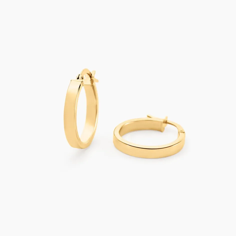 Créoles Or Jaune 375/1000 Fil Carré Lisse Largeur 3mm Diamètre 15mm
