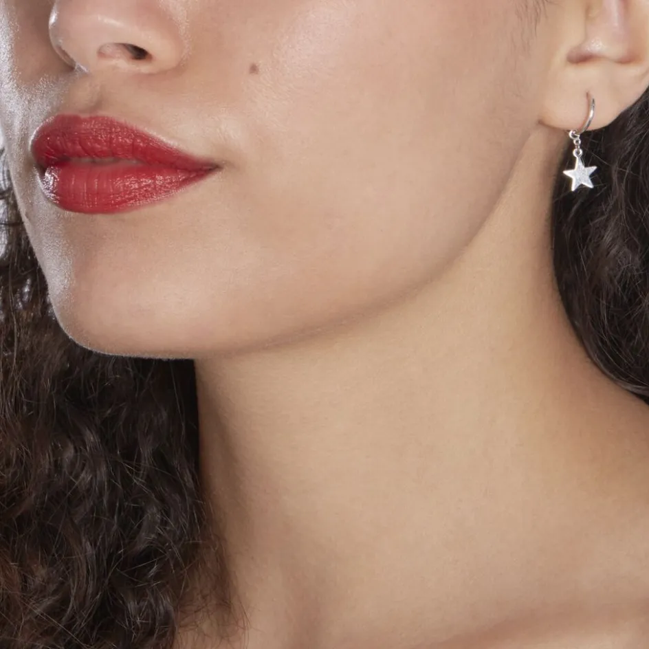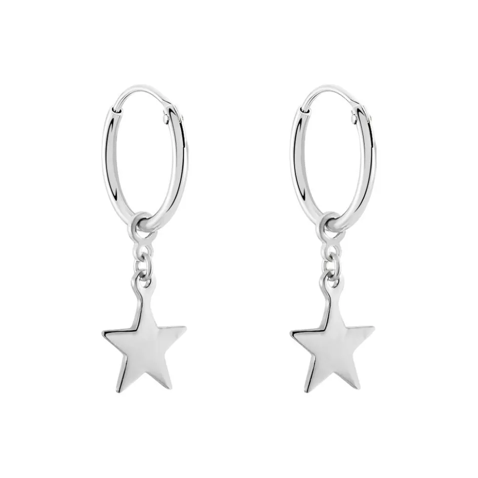 Creoles Argent Blanc 925/1000 Pampilles Motifs Etoiles Diametre 12mm