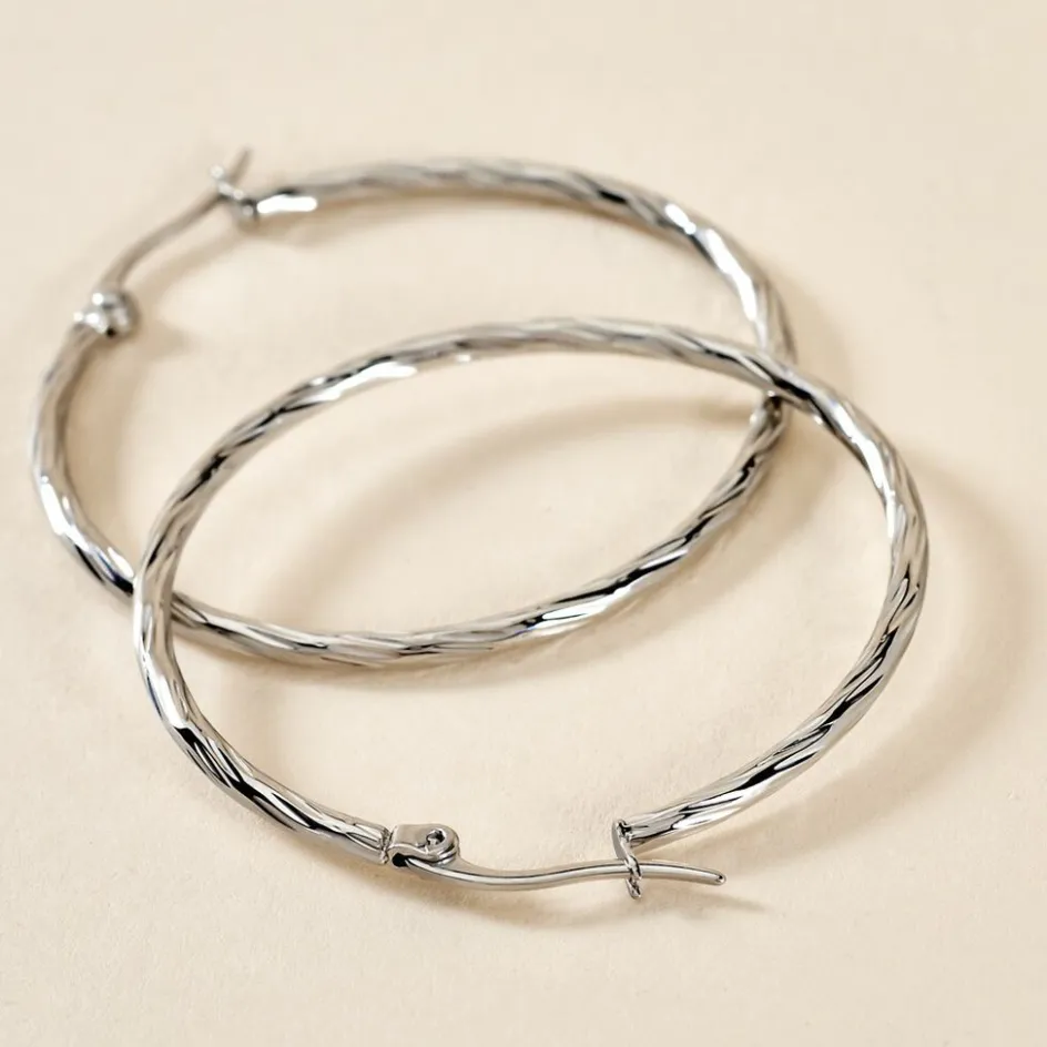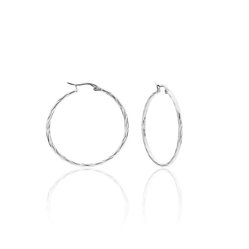 Créoles Acier Blanc Effet Strié Diamètre 40mm