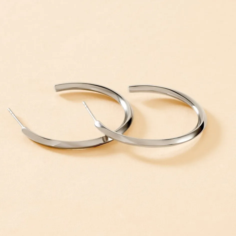 Créoles Acier Inoxydable Blanc Effet Biseauté Diamètre 30mm