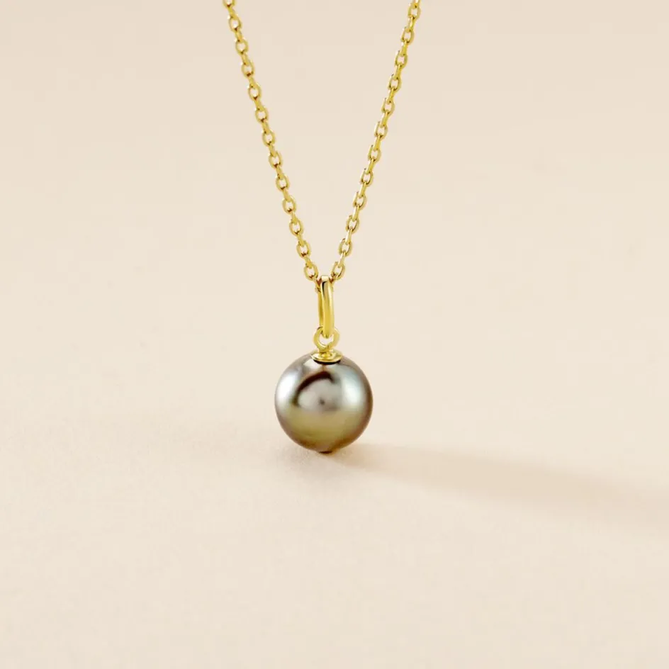 Pendentif Or Jaune 375/1000 Perle De Culture De Tahiti Noire 9.5/10mm