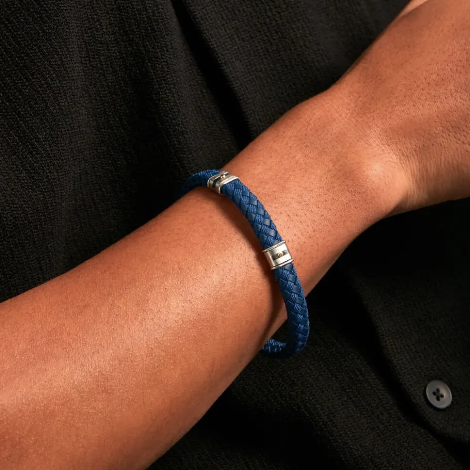 Bracelet Jourdan Kamen Cuir Bleu Acier Argente Polyester Bleu Vis Or 21.5cm Jh300028b