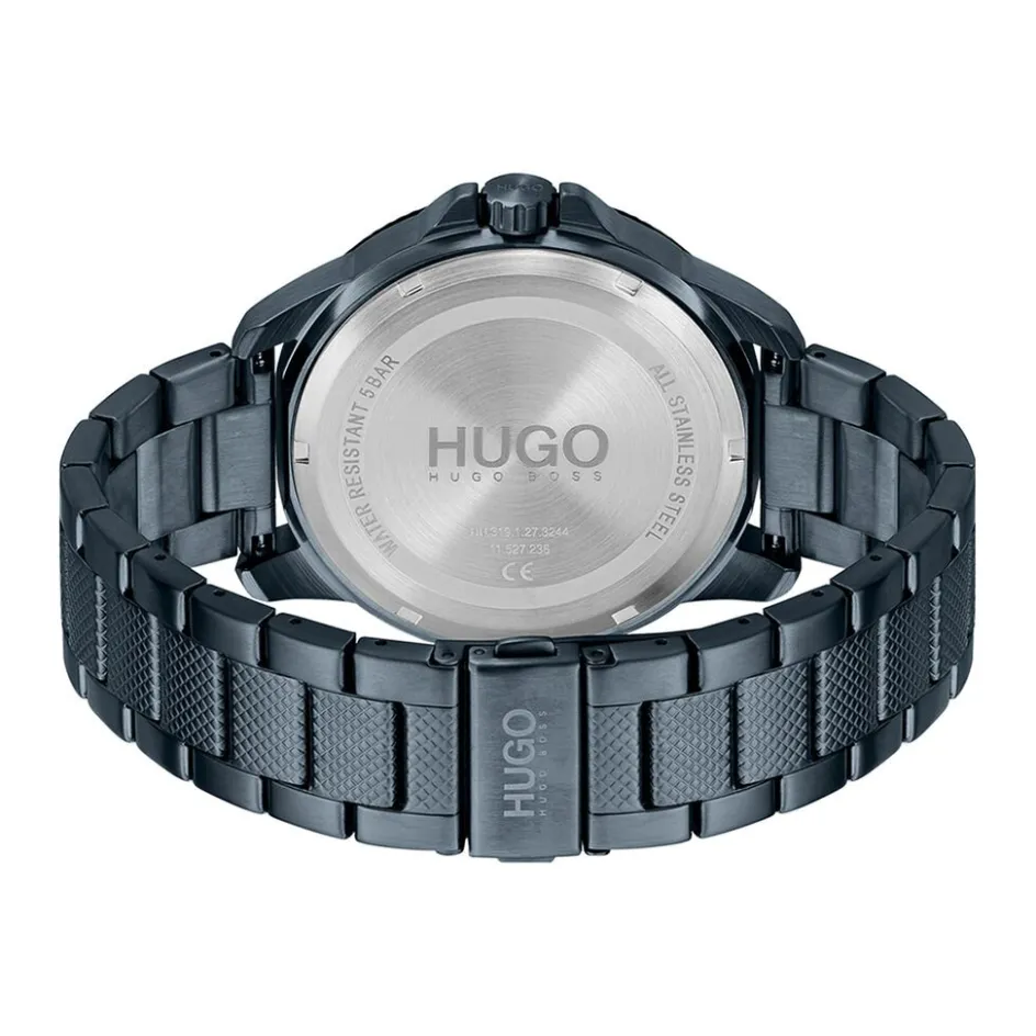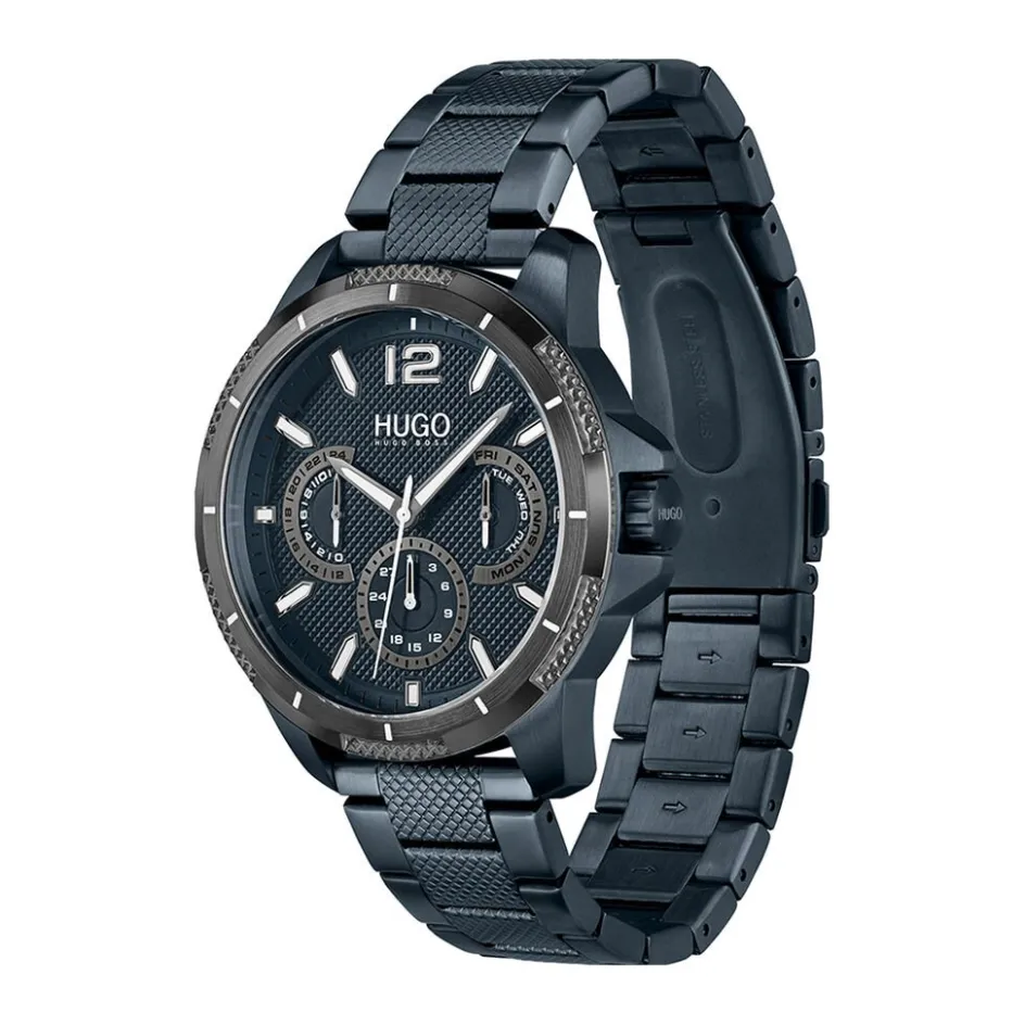 Montre Hugo Sport Acier Bleu Ronde Quartz Multifonction 46mm Fond Bleu Lunette Grise Bracelet Acier Bleu 1530194