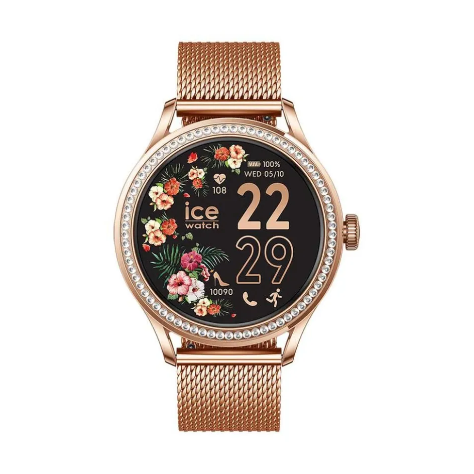 Montre Ice Watch Smart St 2.0 Alliage Doré Rose Connectee Ronde 39Mm Lunette Strass Bracelet Acier Inoxydable Doré Rose 025317