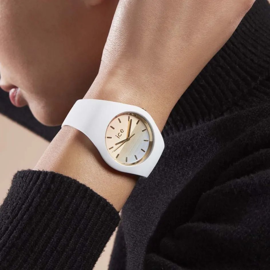 Montre Ice Watch Sunset Acier Blanc Ronde Quartz 40mm Fond Multicolore Bracelet Silicone Blanc 020637