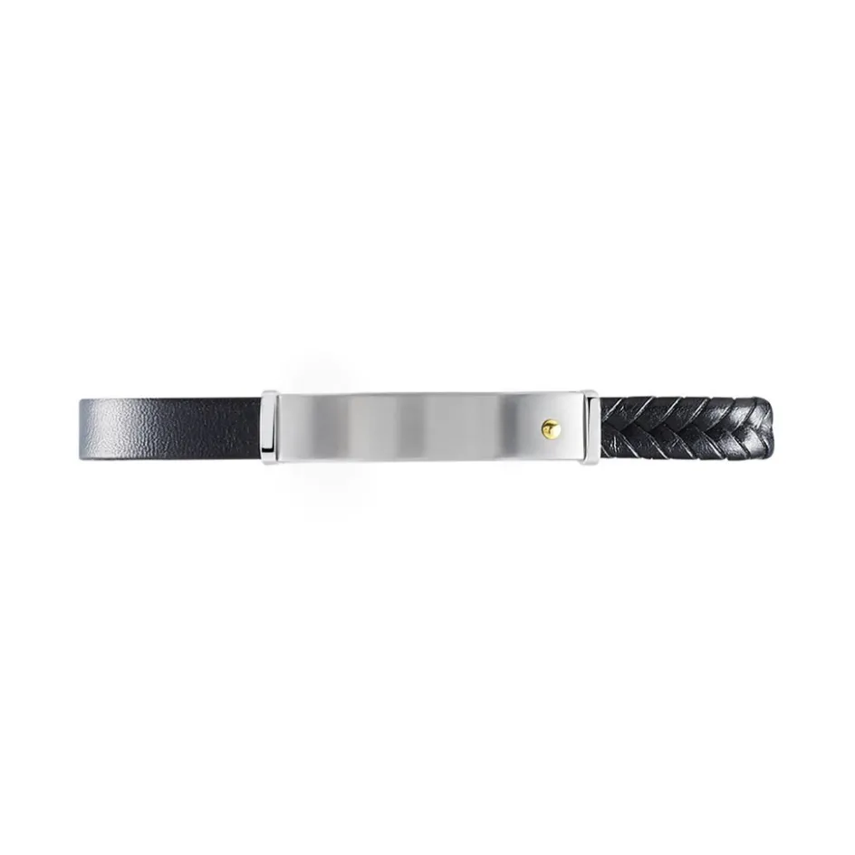 Bracelet Vittorio Cuir Acier Decor Or 20.5cm