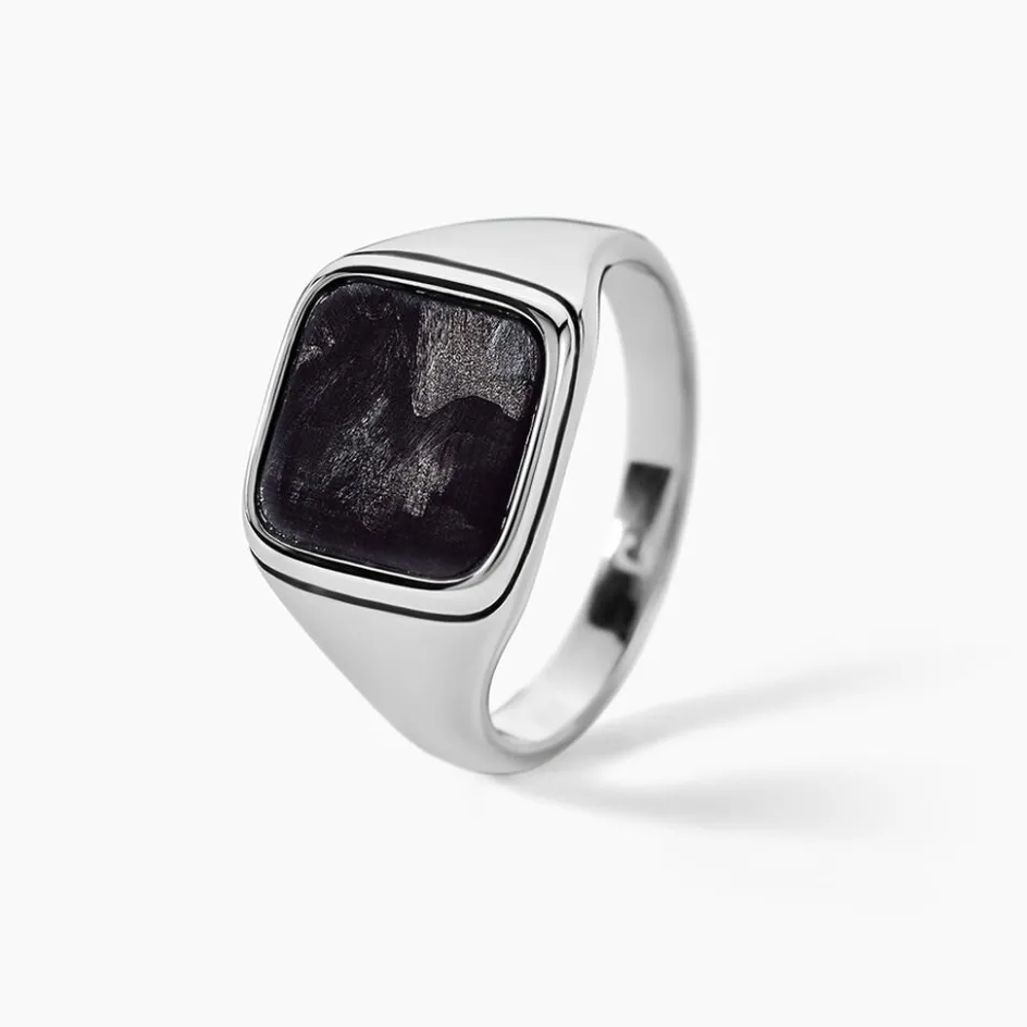 Chevaliere Jourdan Jeremiah Acier Inoxydable Argente Et Carbone Carre Jh250127r