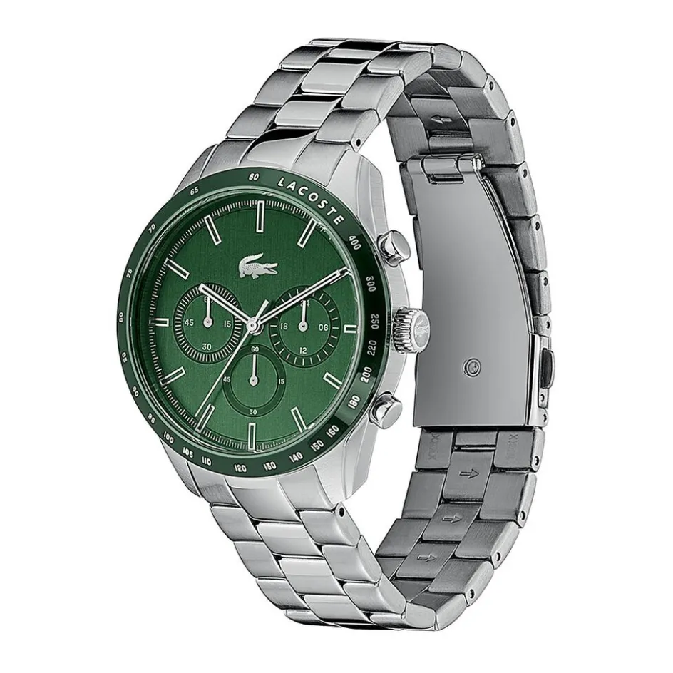 Montre Lacoste Boston Acier Gris Ronde Quartz Chronographe 42mm Fond Vert Bracelet Acier Argente 2011080